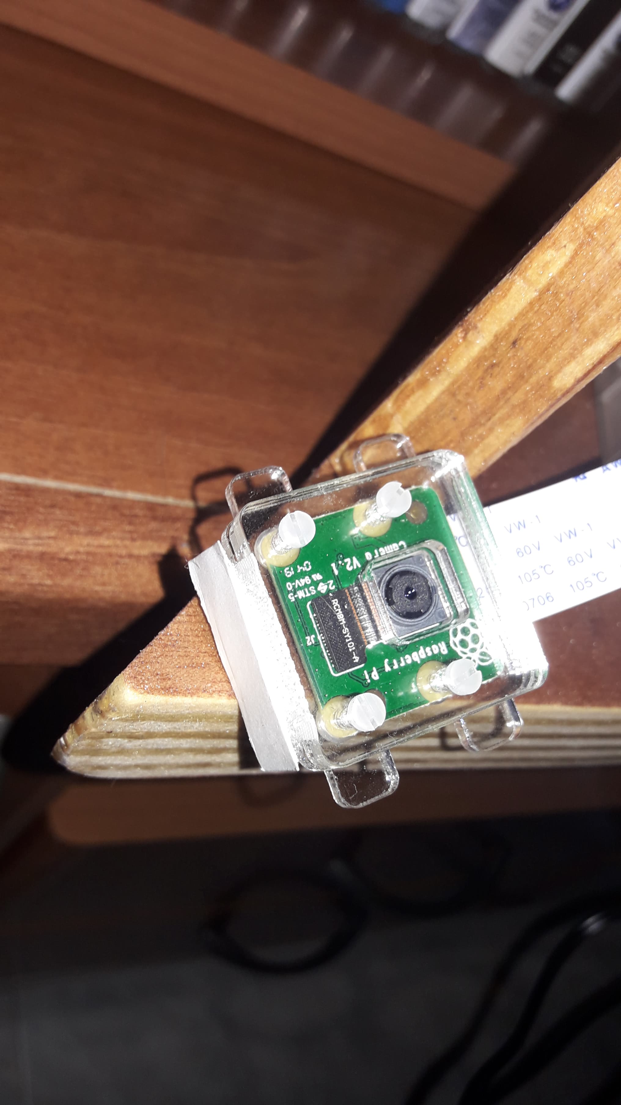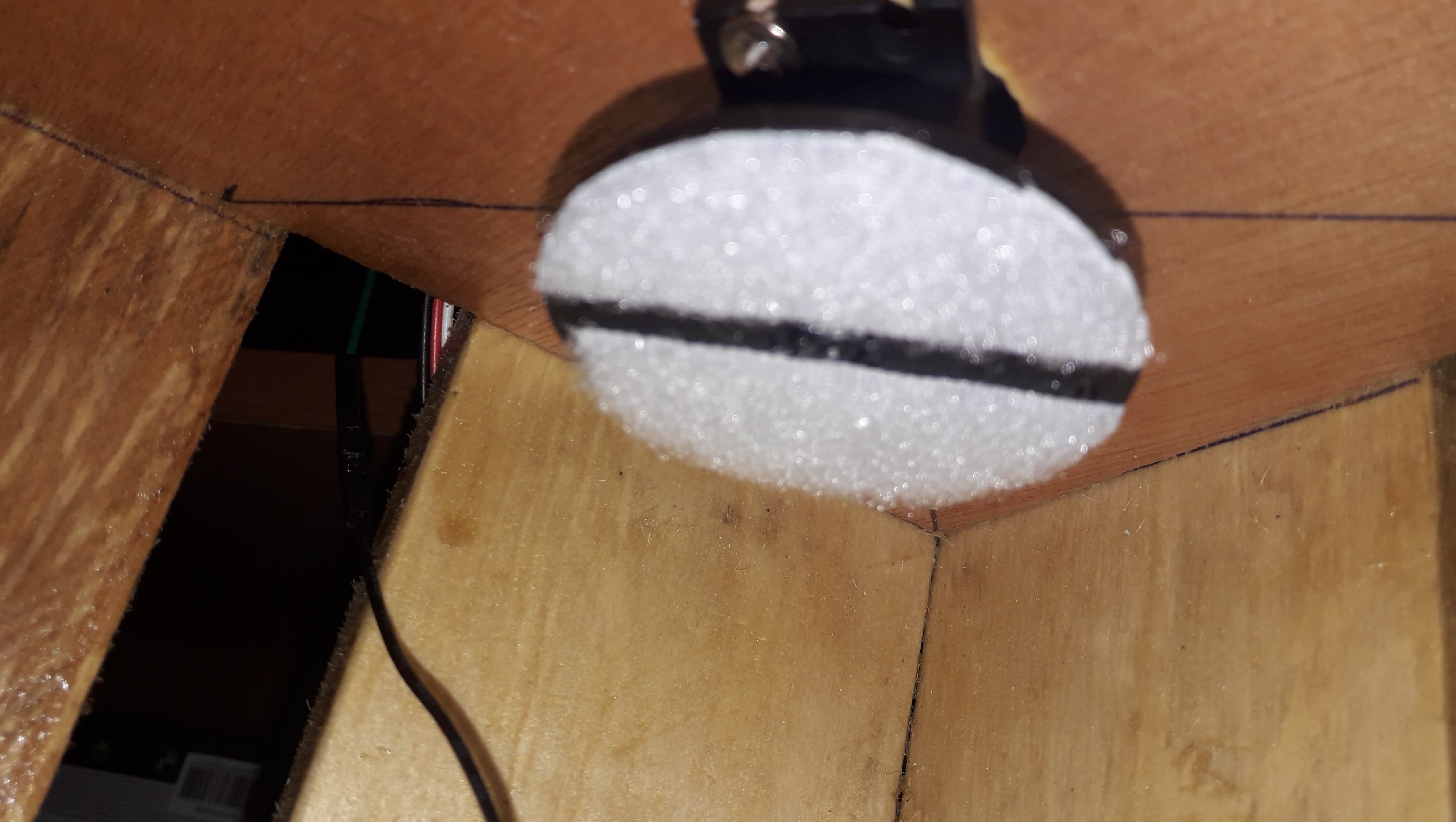Since there will be moving parts and the room for error is minimal, a “case” was designed to hold everything. The case consists of a top and bottom floor, with 4 wooden braces holding both floors together. Up on top the motor will sit facing downwards as the camera couldn’t reach the motor if it was facing up. Due to the camera basically hanging from the motor, a way to hold the camera to the motor was needed. After a bit of research, Velcro seemed like the perfect way to counter the problem. Two strips of Velcro were then purchased, with a small tape layer underneath it to stick the Velcro to the motor and camera. Below you will see how I applied the Velcro.